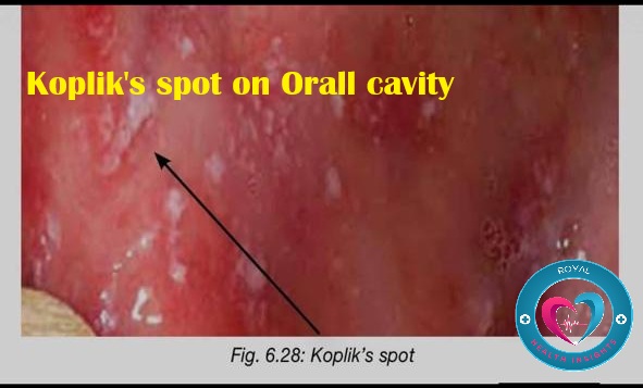 কয়েকদিন পর ( ৩-৪দিন) মুখের ভিতরে দুই গালে সাদা ফুসকুড়ি ওঠে যাকে Koplik’s spot বলে।